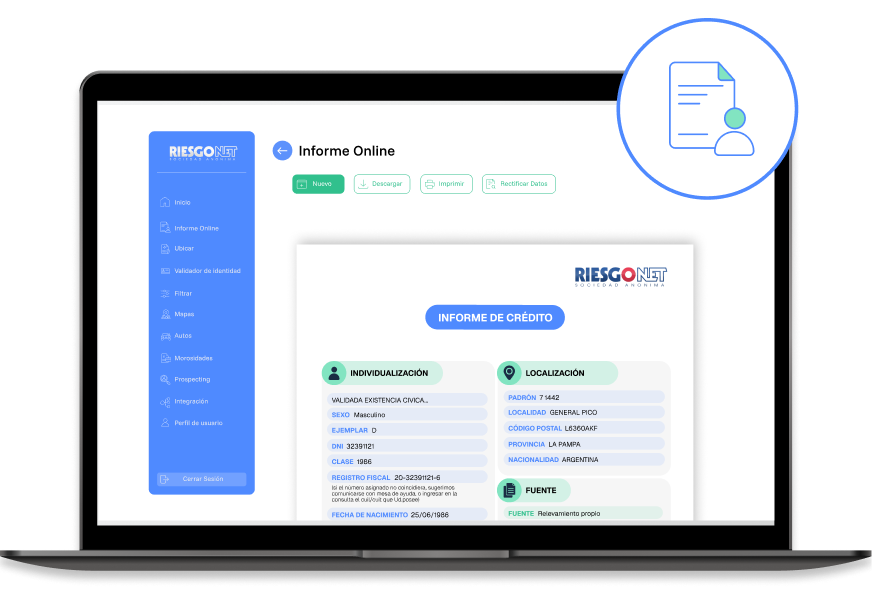 Ya seas un particular, una PYME o una entidad financiera, nuestro Informe Online te brinda la información que necesitas para evaluar el riesgo crediticio de cualquier persona o empresa.